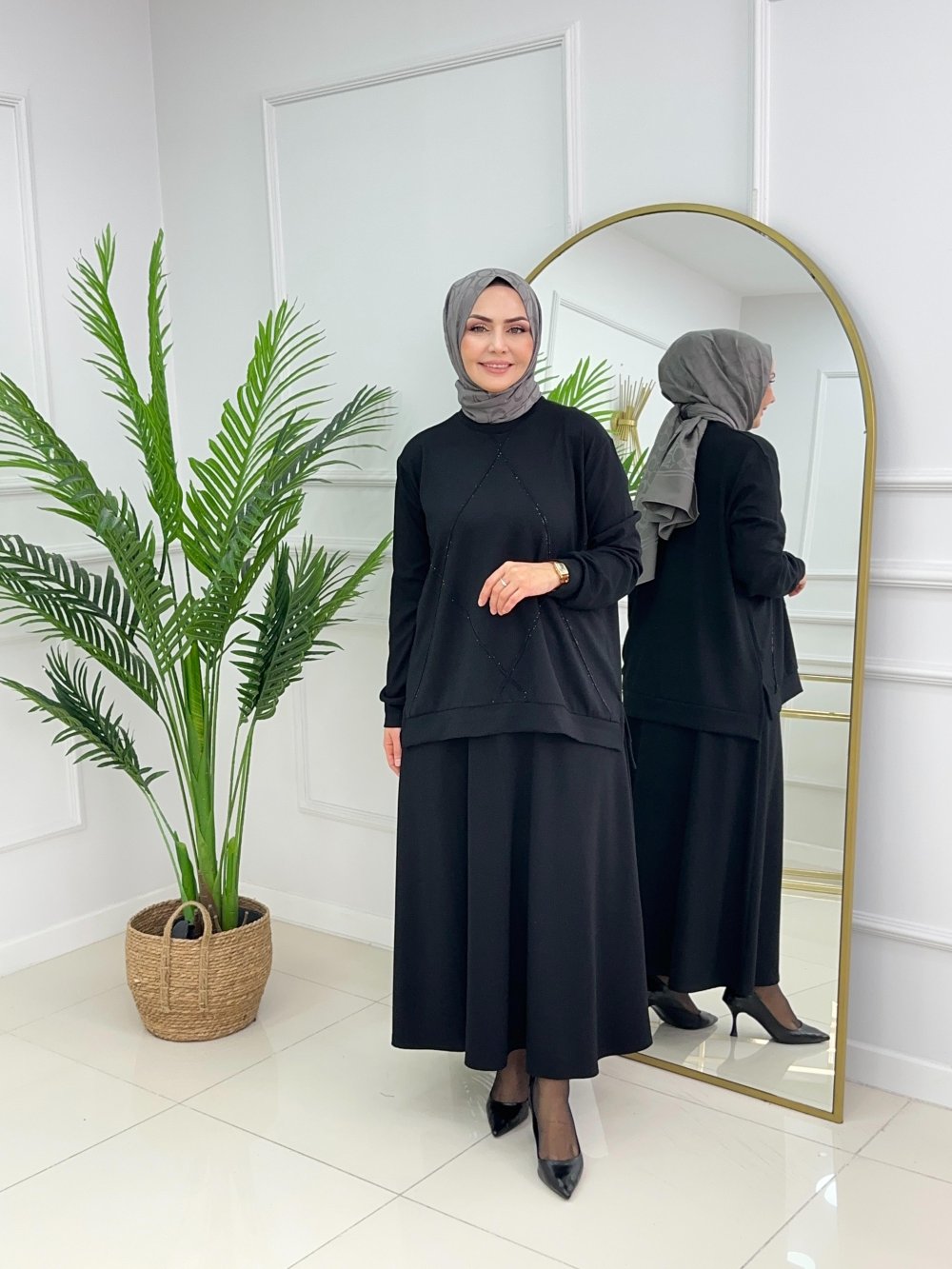 ASMİN ETEKLİ TAKIM - SİYAH Siyah