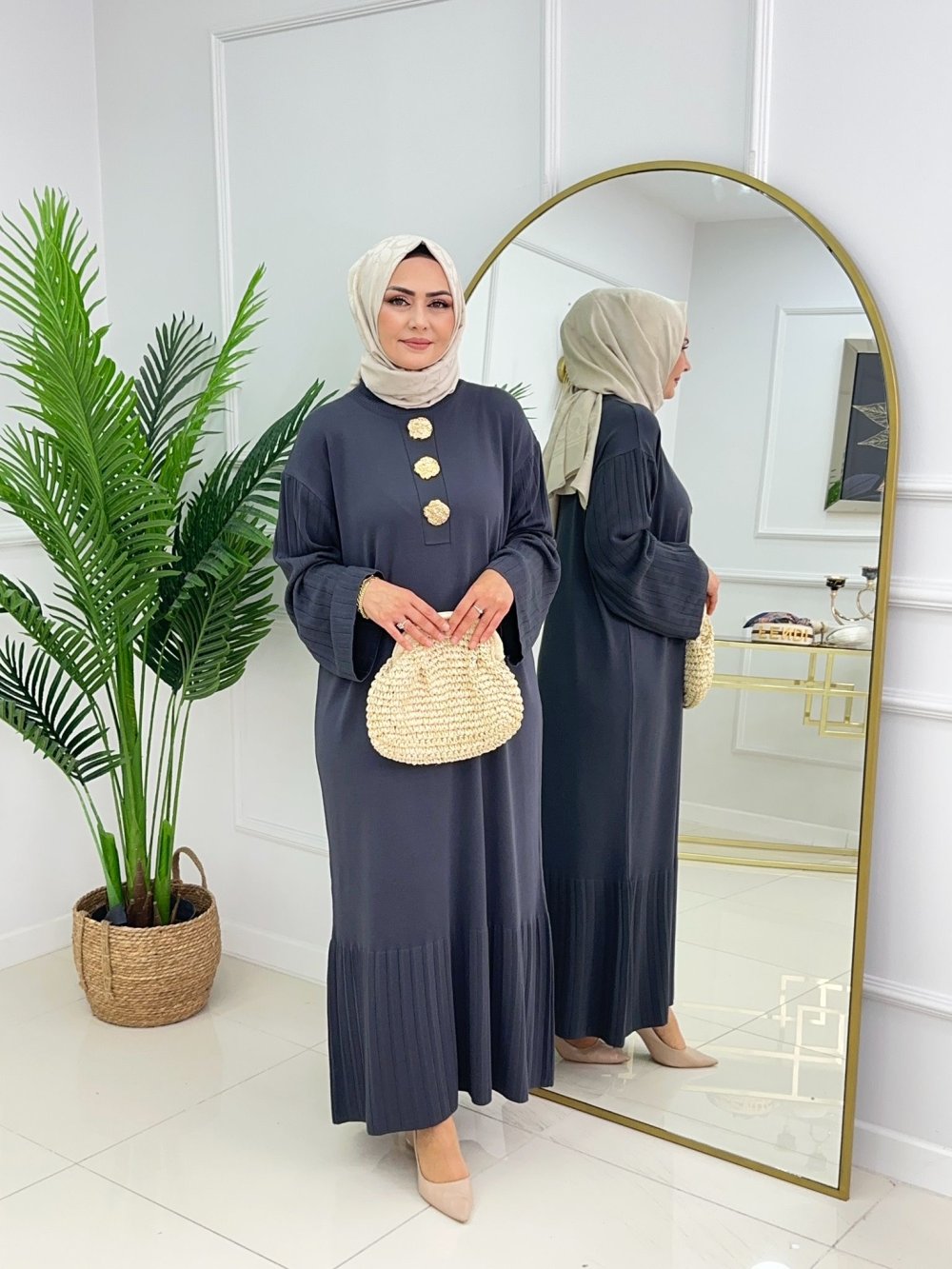 CANSU DÜĞMELİ ELBİSE - ANTRASİT Antrasit