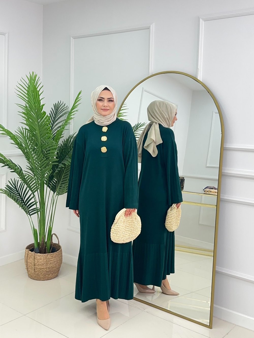 CANSU DÜĞMELİ ELBİSE - ZÜMRÜT Zümrüt