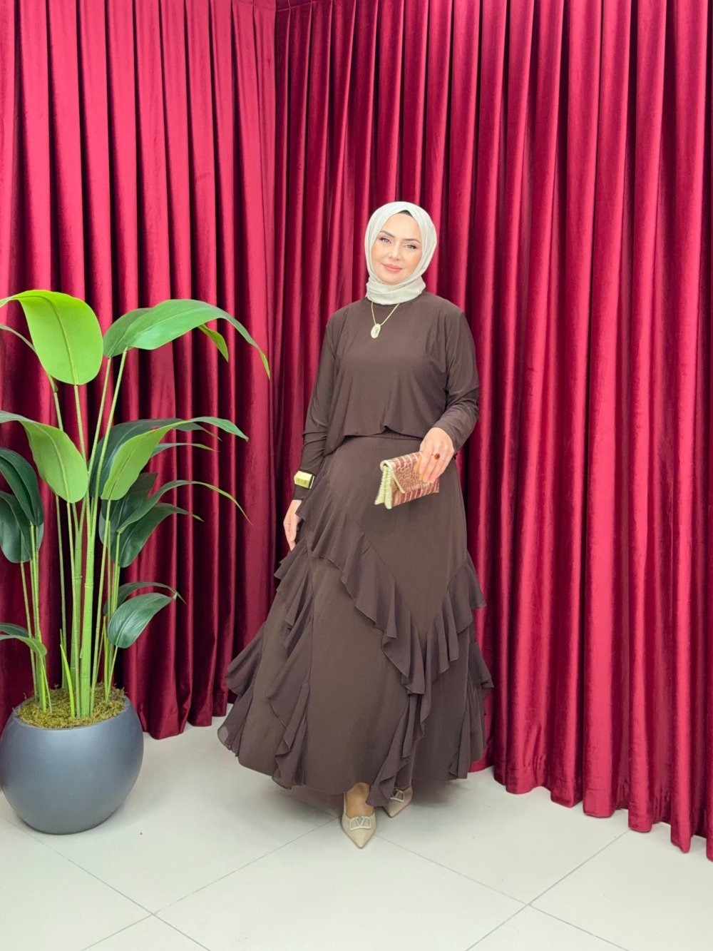 ESMA ETEKLİ TAKIM - KAHVERENGİ Acı Kahve