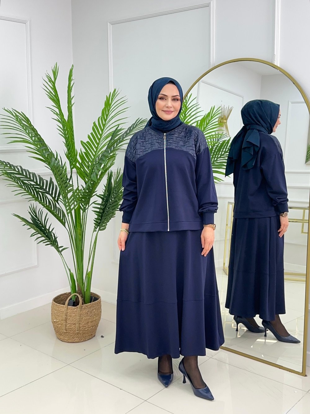 İZGİ ETEKLİ TAKIM - LACİVERT Lacivert