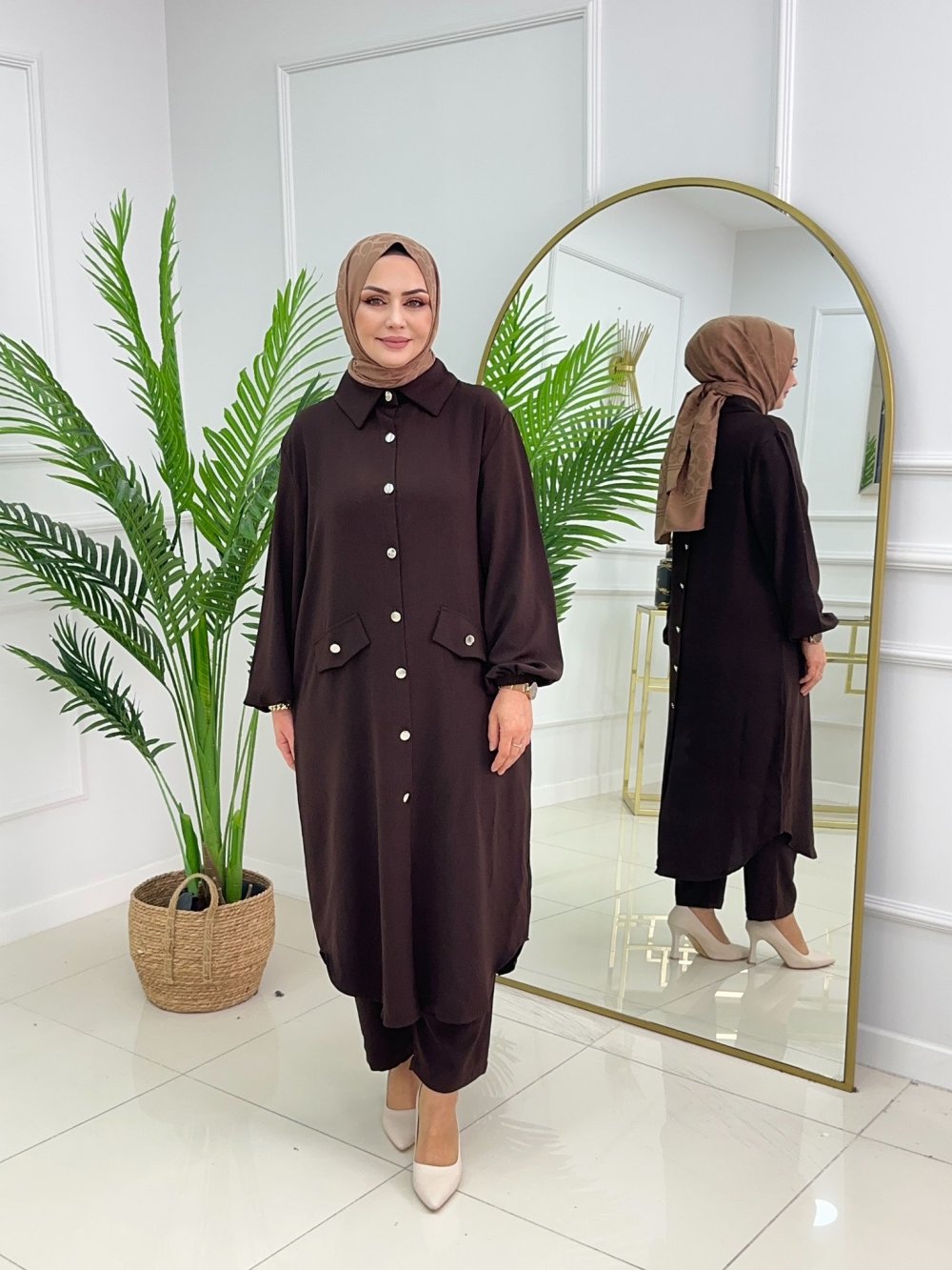 MELİKE DÜĞMELİ TAKIM - ACI KAHVE Acı Kahve