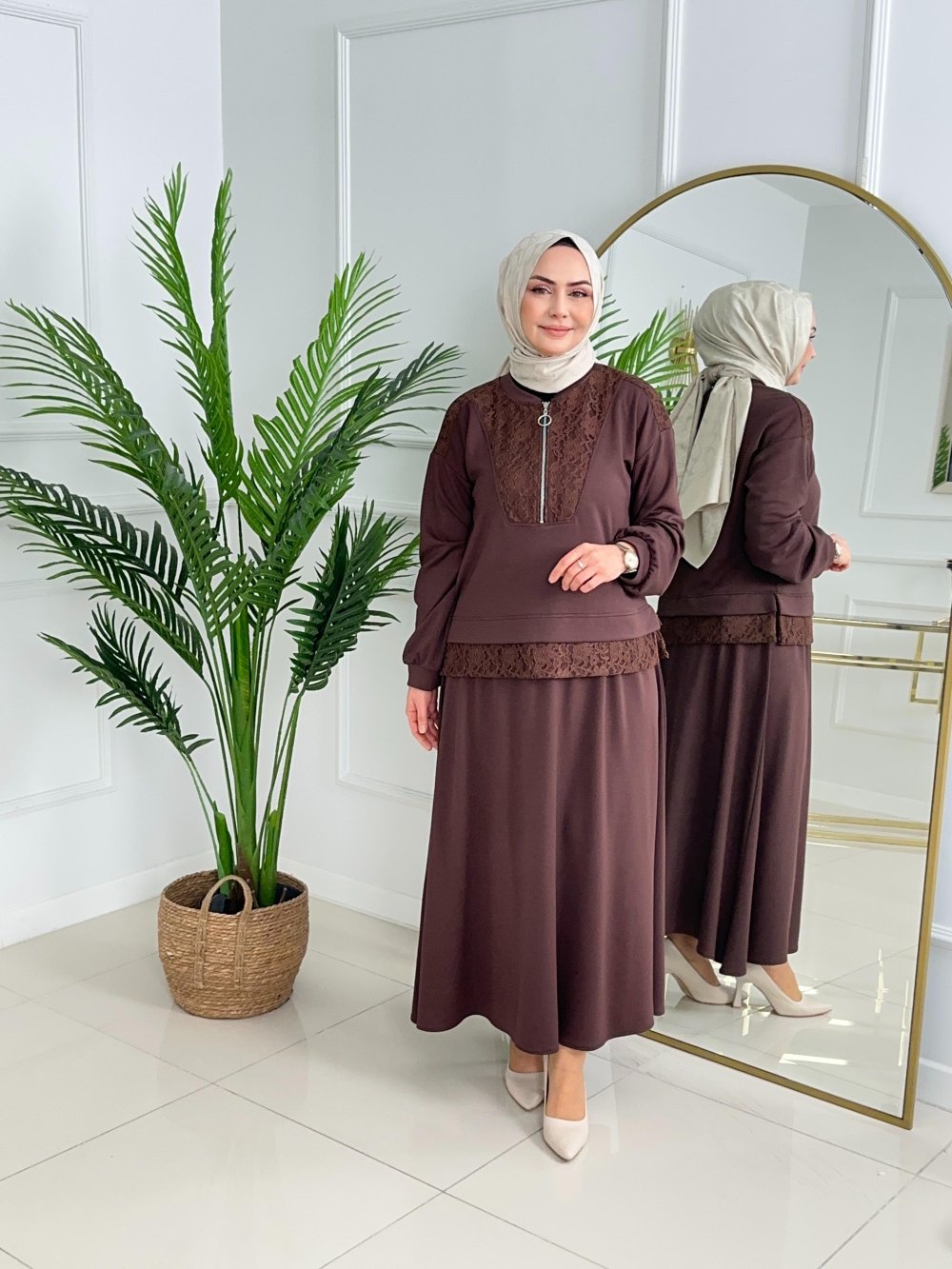 NAZAN ETEKLİ TAKIM - KAHVERENGİ Kahverengi