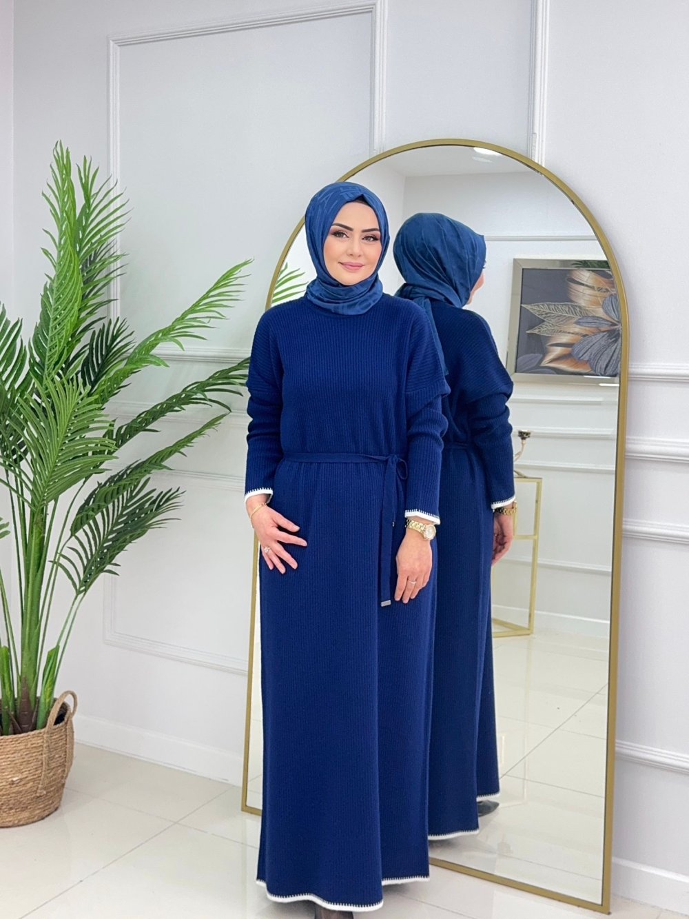 SELVİ TRİKO ELBİSE-LACİVERT Lacivert