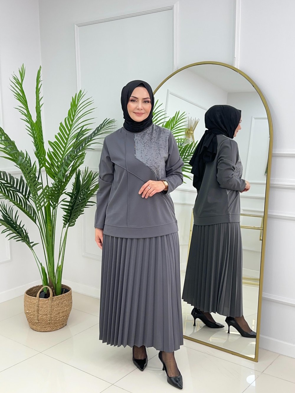 TUĞÇE ETEKLİ TAKIM - ANTRASİT Antrasit