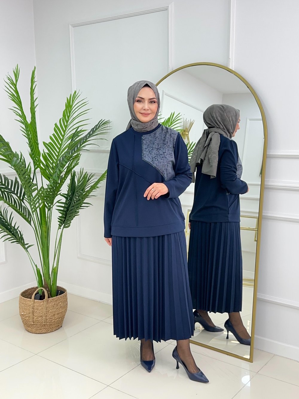 TUĞÇE ETEKLİ TAKIM - LACİVERT Lacivert
