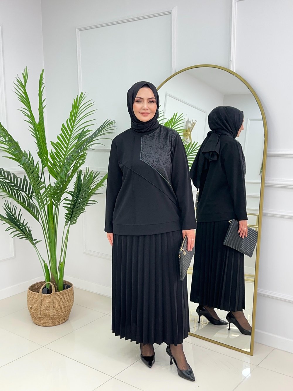 TUĞÇE ETEKLİ TAKIM - SİYAH Siyah
